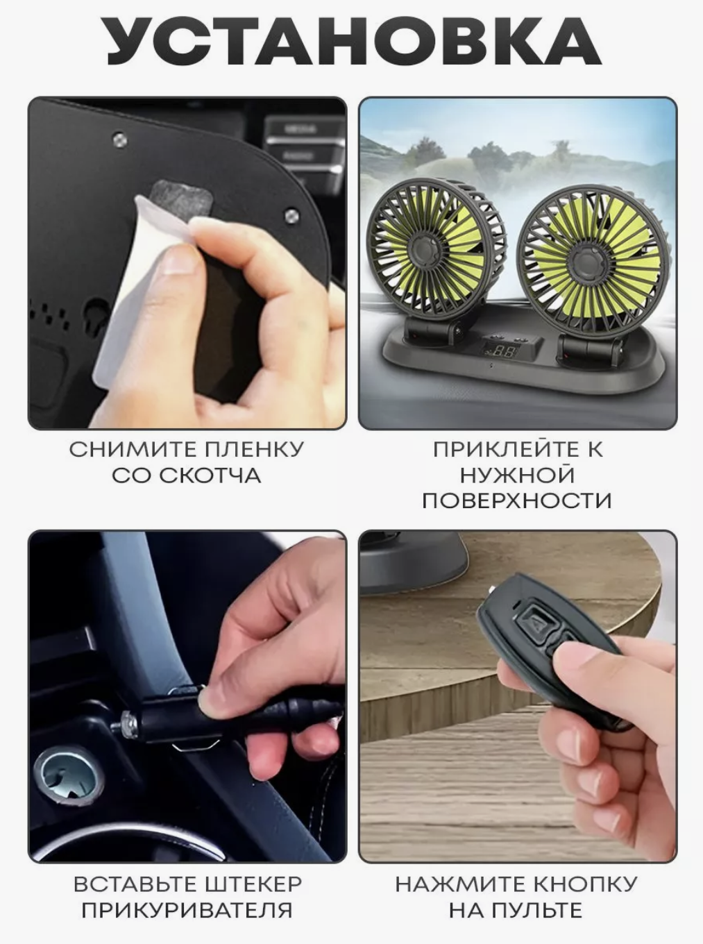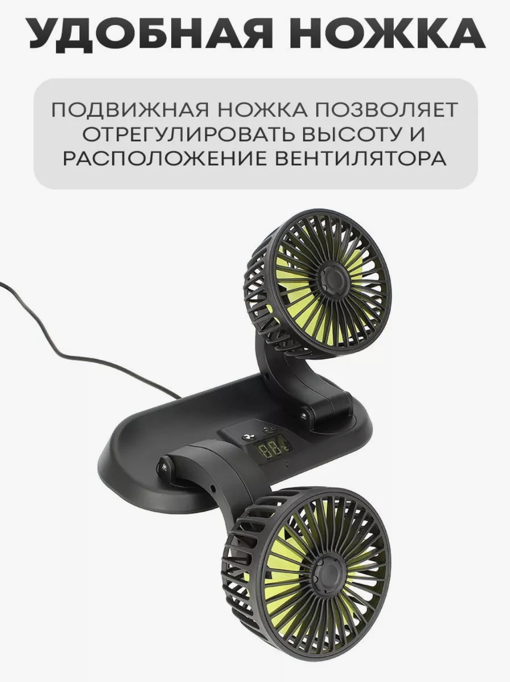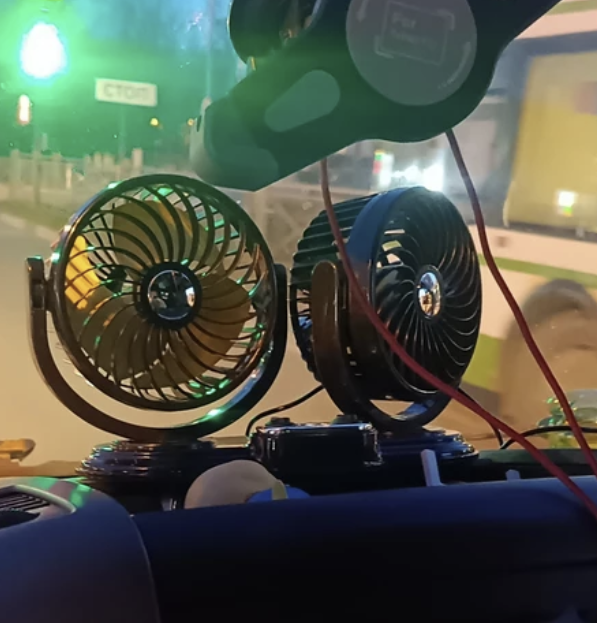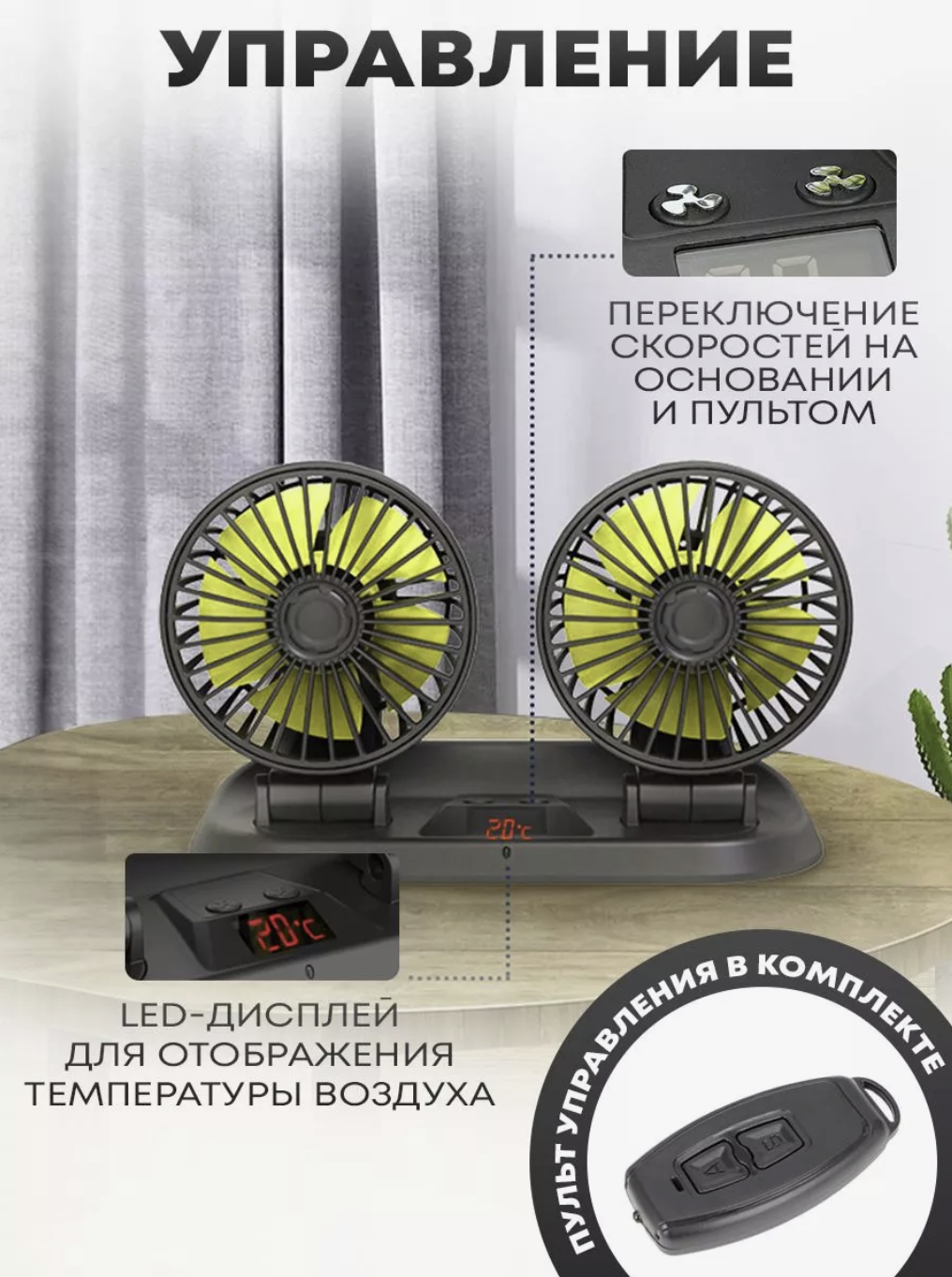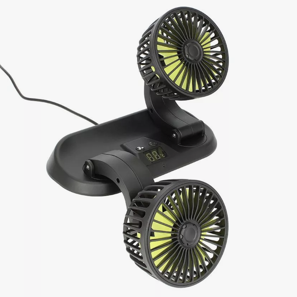 Автомобильный двойной вентилятор с разъемом прикуривателя предоставляет прохладу и комфорт в салоне различных транспортных средств, таких как легковые автомобили, грузовики, автобусы или фургоны. В летний период он охлаждает салон, заменяя кондиционер, а зимой помогает избежать запотевания и обледенения стекол. Кроме того, вентилятор оснащен LED-дисплеем для отображения температуры воздуха.